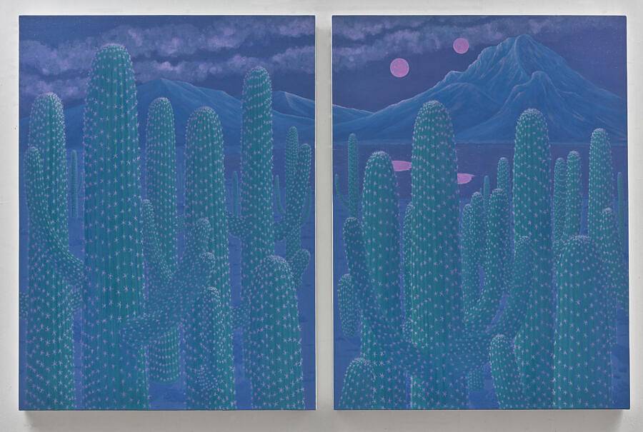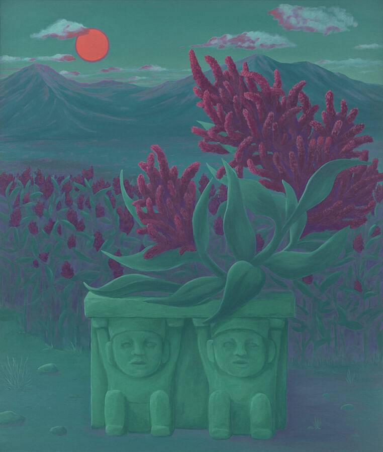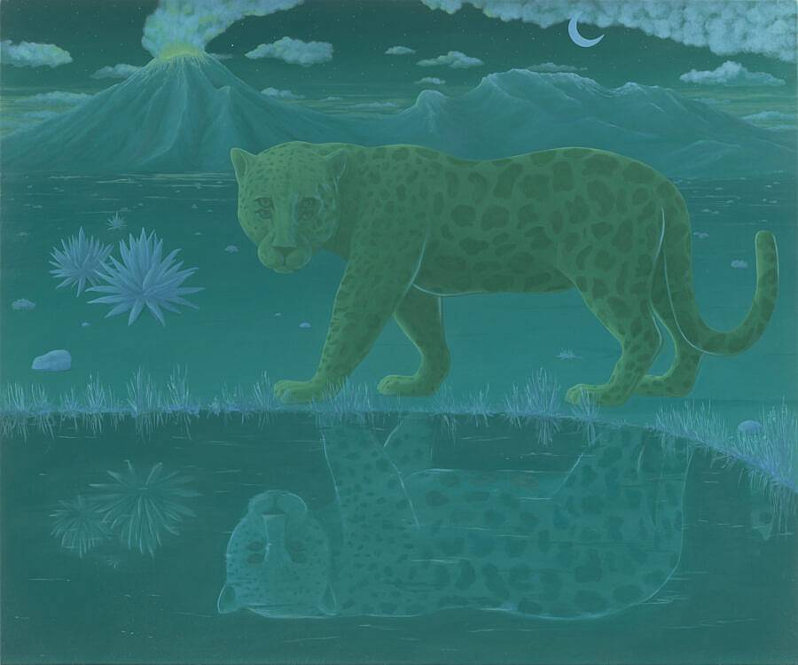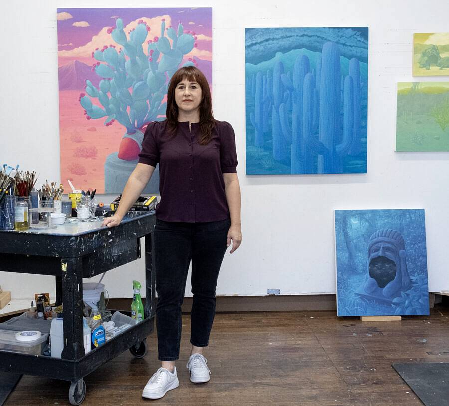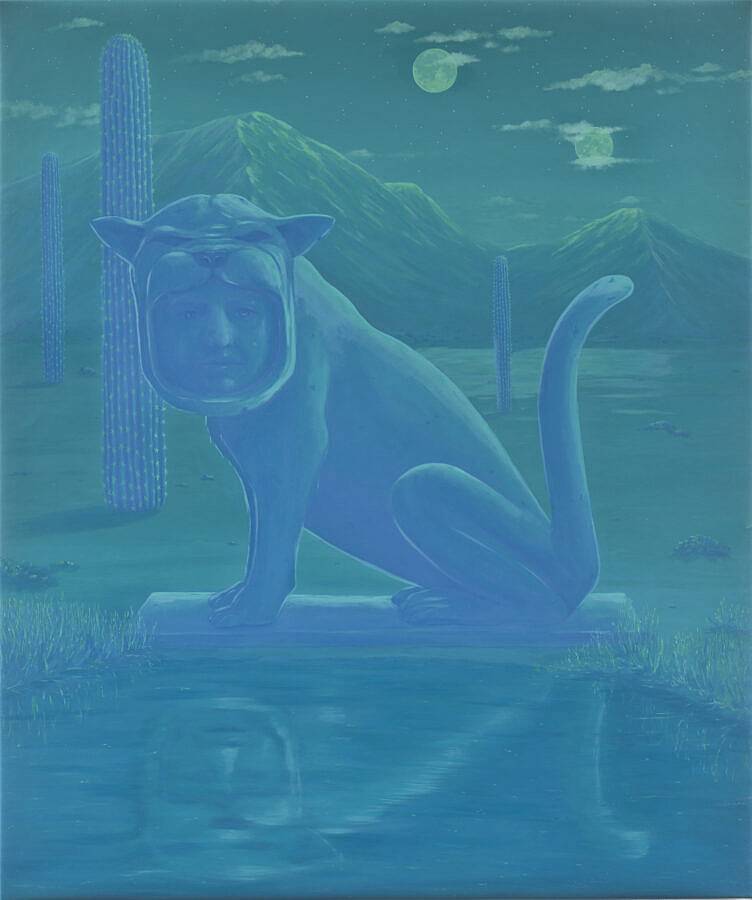 I’m a Mexican-American artist living and painting in Brooklyn, New York. I make surreal landscapes that reference the divide between my two nationalities.