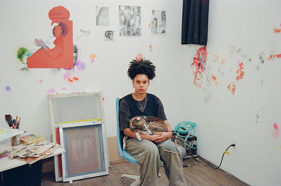 As a really introspective and moody kid who spent a lot of time alone, I found solace early on in drawing. It was a real come up to find that I could transcend time and space with a pencil – effortlessly passing hours and inventing a different reality to exist in on paper. Family and community members gifted me colored pencils and art sets to try. I was in innumerable free after school art programs growing up, too. When I was in high school, I learned how to use a silk screen in one of these programs. I was exposed to a lot of zines, underground comics, artist books, and DIY/punk art spaces, local artists. That informed the development of my early art style and sketchbook practice. I like to use all kinds of media, and I’ve continued to pick up new forms along the way. If something needs to be a drawing it will be a drawing and if it needs to be a video it will be and I’ll figure it out. Although people know me for my paintings and drawings, I don’t want to feel confined or bound to particular media – I hope to build a visual language that will carry across anything.