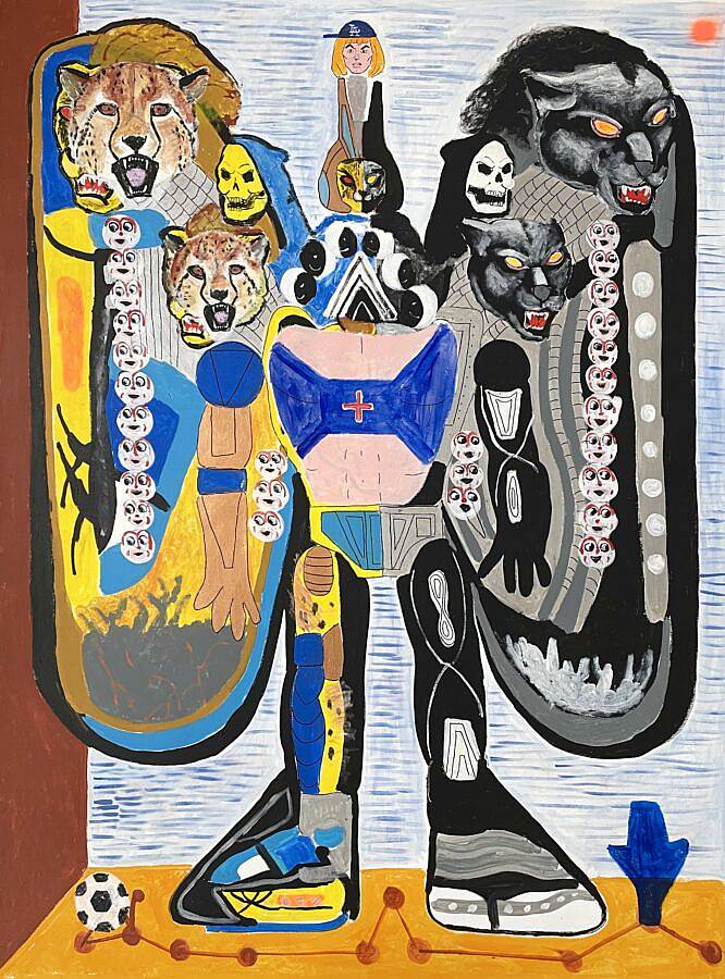 Almost all of my works are sort of improvised. I never do sketches. I try to make the whole painting in my head, and then i try to transfer the image from my head to the canvas. A lot of distortions happen in the transfer, but i find them really exciting. Sometimes the painting in my head looks good, but it works terrible on the canvas. In this case, I usually improvise and change it with different layers and elements.
